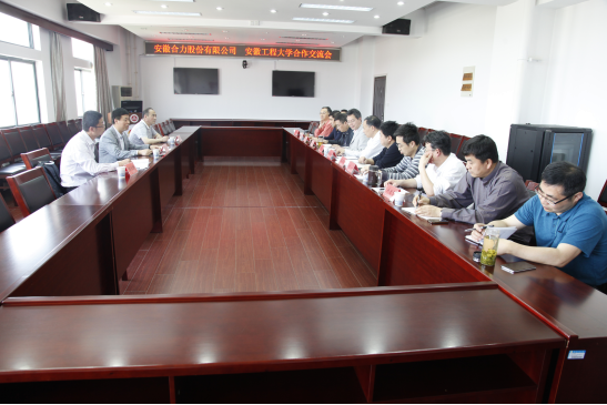 5月4日上午,安徽叉车集团与我校战略合作交流推进会在我校行政楼1121会议室举行。安徽叉车集团有限责任公司党委委员、安徽合力股份有限公司总经理薛白,安徽合力股份有限公司人力资源部副部长李洪俊,新能源车辆研究所所长陈仕胜,我校副校长郭兴众,科技处、研究生部、学生处、团委、发规处、继续教育学院、机械与汽车工程学院、艺术学院负责人及部分教师代表参加了交流座谈会。会议由郭兴众主持。