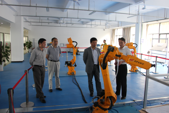 交流会后,薛白一行在机械与汽车工程学院院长许德章的陪同下,参观了芜湖市与我校共建的机器人技术产业研究院。同时,新能源车辆研究所所长陈仕胜在我校录播教室为我校师生作了题为《新能源技术在工业车辆行业应用与展望》学术报告。