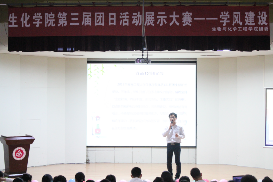 本次团日活动大赛紧紧围绕“学风建设我先行”这一主题展开,学院一、二、三年级的52个团支部积极参与。各团支部以这次活动为契机,开展了丰富多彩的学风创建活动,经过初评,12个团支部进入决赛环节。各团支部认真准备,结合自己的专业用演讲、合唱、情景剧等形式,展示支部开展的学风建设活动以及支部风采。其中,化工151团支部改版的化学版《青花瓷》和食品151团支部学风建设舞台剧让人耳目一新;化工133团支部组织了一场别开生面的模拟面试,帮助同学们寻找自身差距;高分子143团支部以宿舍为单位,开展了一场轰轰烈烈的比、学、赶、超学风建设活动,构建了浓郁的宿舍学风文化氛围。通过各个团支部的精彩展示,让大家感受到生化学子胸怀理想、努力拼搏的精神风貌,同时也反映了团支部的凝聚力和各团支部创意的学风建设活动。最后,应化141团支部的大合唱《仰望星空》给比赛添上一抹亮色,会场灯光关闭,同学们挥舞着手中的荧光棒,像夜空中的星星,表达出大家要“仰望星空、脚踏实地”的决心,精彩的表演赢得了阵阵掌声。
