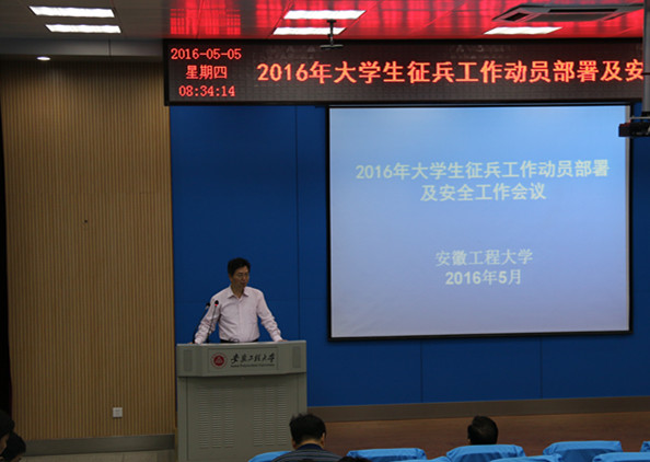 郭兴众传达了国家和安徽省有关做好2016年大学生征兵和学生安全工作的会议精神。他指出,做好大学生征兵工作,既是新形势下加强国防和军队现代化建设、为部队输送高素质人才的必然要求,也是发挥军队资源优势促进青年学生成长成才的重要途径,征兵工作一份沉甸甸的责任,大家要牢固树立责任意识,把宣传动员工作做到每一位学生,要扎实地做好兵役登记、材料政审等各项工作,为每名报名应征学生做好服务。