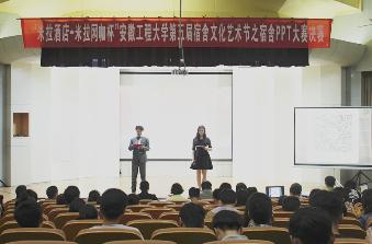近日,由校团委、后勤服务集团主办,校学生宿舍管理委员会承办的第五届宿舍文化艺术节之宿舍PPT大赛决赛在学术报告厅成功举办。校团委赵争老师,学生宿舍管理中心主任李四军、副主任潘陵平,龙城物业公司经理欧阳伟,安普物业公司常务经理沈晨月应邀担任评委。后勤服务集团总经理胡长新、校团委副书记冉昆玉及三百多名观众观看了本次比赛。