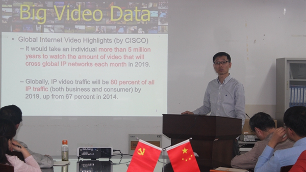 5月13日下午,应校科技处、研究生部和计算机与信息学院邀请,复旦大学计算机科学技术学院姜育刚教授在计算机与信息学院会议室作了题为“基于深度学习的视频内容识别”的学术报告。计算机与信息学院教师、研究生和部分计算机科学与技术专业学生聆听了报告。报告由计算机与信息学院院长周鸣争主持。