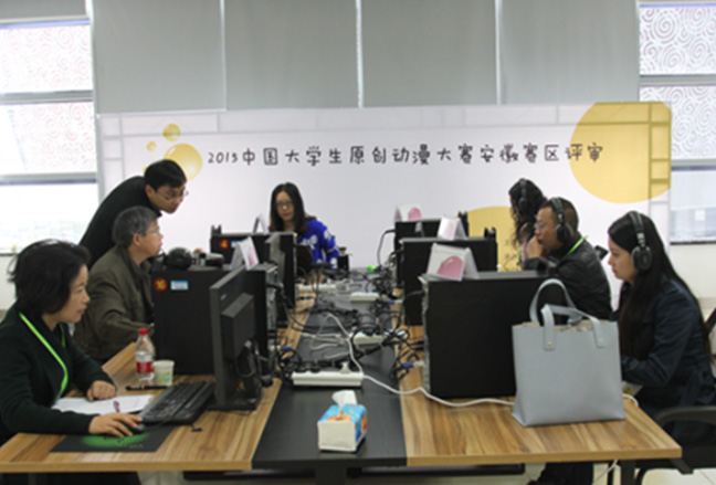 该大赛先由各省分赛区初赛,经初赛选送作品参加全国比赛。作为安徽赛区承办单位,我校为组织好赛区的比赛,在省教育厅的指导下,成立了安徽赛区组委会。学校高度重视,校长刘宁、副校长叶常林也多次召开教务处、艺术学院等有关部门和学院负责人会议,研究部署大赛有关工作,从而使我校出色地完成了安徽赛区赛事的宣传、组织和评审工作。2015年11月15日安徽省赛区大赛在芜湖国家级广告产业园举行,学校邀请了21位国内知名动漫专家从全省1200余件参赛作品中评出各类别等级奖,并为我校动画专业和数字媒体艺术专业的发展出谋划策。与此同时,为组织、动员艺术学院相关专业师生参加此次大赛,通过高级别专业赛事促进教学效果的提升,增进与兄弟院校交流,进而推动相关专业的发展,校院两级经过有效的组织和动员,动画专业和数字媒体艺术专业师生参赛积极性高涨,在有限的时间内创作出各类动漫作品200余件。经校内专家评审后,初步评选出校内等级奖。承办安徽赛区的组织和评审工作,不仅提高了我校在省内的影响力,也促进了与其它兄弟院校的交流。