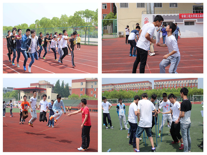 随后,宿舍趣味运动会决赛在武术协会的精彩表演中拉开了序幕。本次宿舍趣味运动会共有两轮,第一轮设置了四个项目。纵观各个分赛场,每一个选手或细细观察示范动作,或屏气聆听比赛规则,个个摩拳擦掌,充满斗志。链接加速环节,考验着每个人的体力和耐力,稍有不慎,便前功尽弃。你看,那些选手们个个凝神聚气,好似一股股拧不断的钢索,全力冲向终点;吸管运输环节,表现的则是节奏和技巧;集体跳绳要求成员间动作的一致性和密切配合,这是室友间默契度的进一步检验,女生们像奔跑的小鹿,在悠悠长绳中尽显灵动,而男生们的表现一点也不亚女生们;障碍取物环节,要求在眼被蒙而心则明状态下取胜,难度虽然加大,但选手们个个艺高胆大,不畏前途困难重重,在队友相互鼓励、加油声中,坎坷也变成了坦途。第二轮共有12个寝室进入终极项目的PK,所谓“独木难支,二木为林,三木成森”。各参赛寝室使出浑身解数,时而沉着冷静,时而身手敏捷,积极挑战着“不倒森林”项目,欢乐和汗水在青春的脸上流淌,美丽的运动场上空洋溢着动人的青春旋律。经过三个小时的拼搏,最终,一等奖由男生20#108寝室和女生5#322寝室共同获得,男生2#217、女生2#612等10个寝室分获了二、三等奖。
