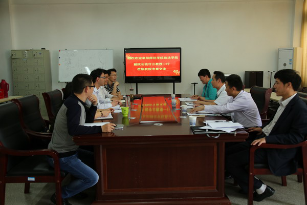 5月19日下午,阜阳师范学院政法学院院长钱守云一行4人到人文学院调研交流。人文学院副院长刘军、周伟及部分专业负责人参加了交流座谈。