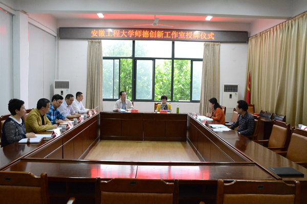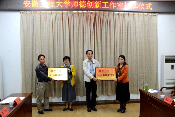 近日,我校“师德创新工作室”授牌仪式在工会会议室举行,省教育工会主席凤桦,校党委副书记苏国红为工作室授牌。校工会主席王河,生物与化学工程学院党委书记王弘,机械与汽车工程学院党委书记邓英扣,马克思主义学院党总支副书记王勇智,校工会副主席张寅红以及工作室负责人吴之传、俞卫真等一同参加了授牌仪式。