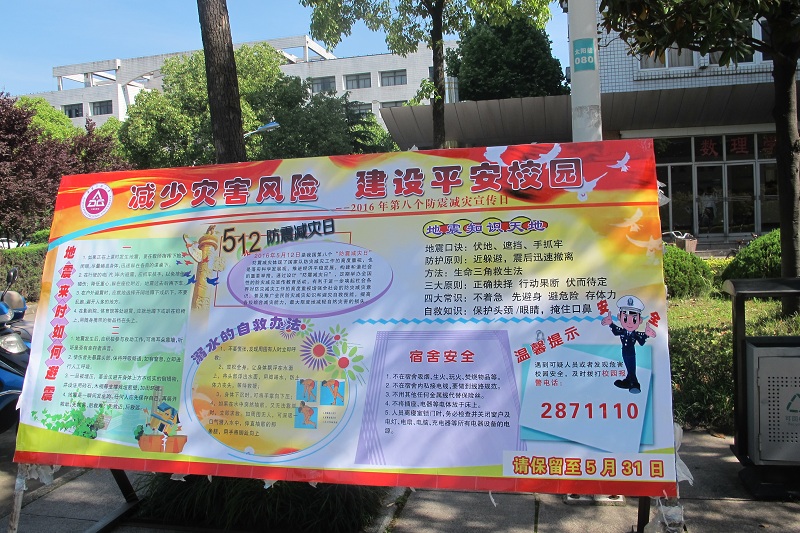 为增强广大师生的防震减灾意识,提高自救自护能力,结合“5.12”我国第八个“防灾减灾日”,学校开展了以“减少灾害风险,建设平安校园”为主题的“防震减灾”专题教育宣传月活动。