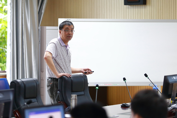 接下来,韩茂安做了题为“问题主导的研究式教学模式探索与实践”的报告。数理学院全体青年老师聆听了报告。韩茂安在报告中首先谈了对大学教育的理解,他说大学教育的中心任务是培养有知识有能力有素质的高级人才,教育中最重要的环节是课堂教学,而课堂教学追求的是好的教学质量和教学效果。随后,韩茂安结合自己的教学经验,分别谈了问题主导的研究式教学模式在研究生和本科生的教学中的应用及取得的效果,并举实例说明了问题主导的研究式教学模式如何使用。最后,结合他的教学论文说明了在教学中如何思考问题、发现问题和解决问题。报告会结束后,他与老师交流了教学的心得。