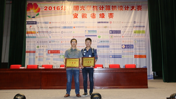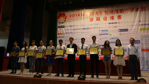 由安徽省教育厅主办,安徽大学承办的2016年中国大学生计算机设计大赛安徽省级赛圆满结束,并于6月5日在安徽大学磬苑校区举行了隆重的颁奖典礼。本次全省报名参加中国大学生计算机设计大赛安徽省级赛的有效参赛作品共2017件,经专家初评,遴选了858件作品进入决赛。共评出本科组一等奖83个、二等奖156个、三等奖208个、优胜奖350个,高职组一等奖38个,二等奖79个,三等奖156个。