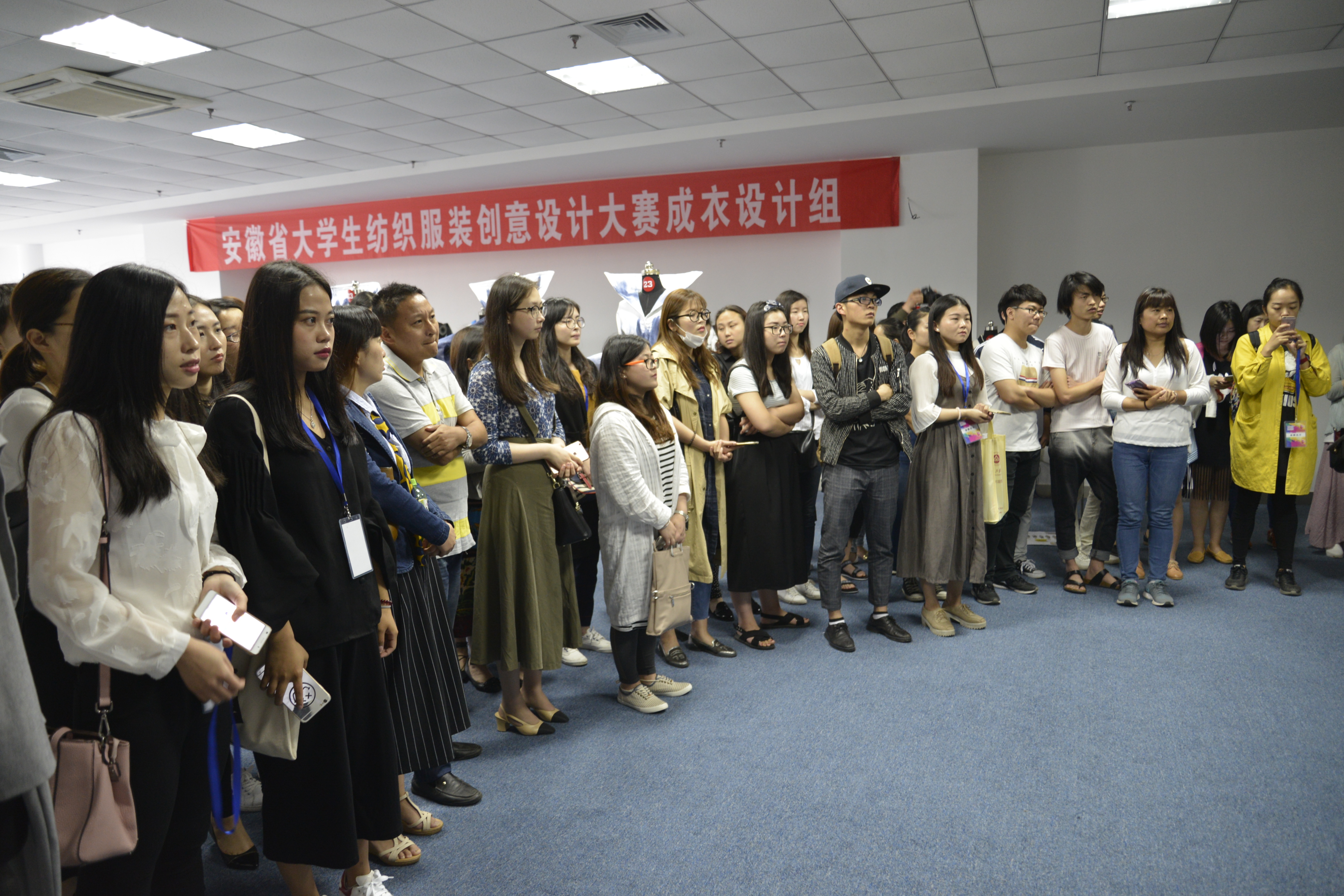 安徽省教育厅高度重视此次大赛,在筹备阶段即成立了由厅领导、相关职能处室负责人和各高校负责人组成的大赛组委会,指导制定了大赛章程,明确了大赛主题、参赛作品类别及要求等内容。为了保证大赛作品评审的公正性和权威性,大赛组委会成立了由东华大学郭建生教授担任主任,苏州大学潘志娟教授、江南大学梁惠娥教授担任副主任的评审委员会,并聘请东华大学郭建生教授、陈彬教授、刘瑜教授、刘咏梅教授、黄晓昭教授、江南大学梁惠娥教授、张毅教授、王宏付教授、王蕾教授、潘春宇副教授、苏州大学潘志娟教授、孙玉钗教授、李正教授、浙江理工大学阎玉秀教授、沈婷婷副教授以及上海劲霸男装服饰有限公司营销总监刘勇、深圳菲逊服装研究所设计总监曹青华、上海既特服饰有限公司总经理高宇等18位来自全国各地的纺织服装领域教育教学专家和企业专家担任评审专家。评审工作采用匿名评审方式进行。