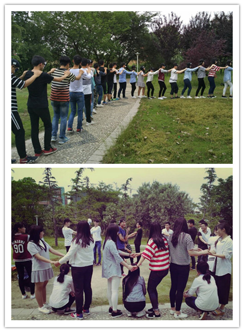 游戏分三个阶段,首先是破冰阶段,开展了“奥特曼大作战”、“电波的速度”小游戏,使大家开始逐渐熟悉,认识彼此;其次,通过“松鼠和大树”、“抓逃手指”的游戏,同学们开始投入到游戏中去,享受其间的快乐;最后,“穿越电网”、“盲人方阵”等训练项目,使同学们增强了集体意识,懂得了团结与合作。加油声、欢呼声,充斥着校园的角落,为5.25心理素质拓展活动画上了圆满的句号。