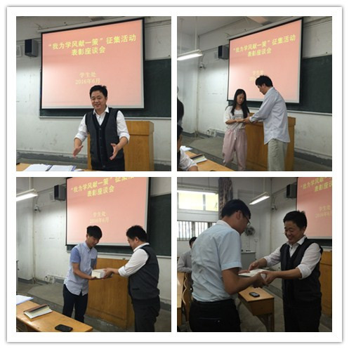 6月2日在2教308教室,学生处召开了获奖人员表彰座谈会。座谈会上,同学们各抒己见,荣获特等奖的电气工程122班王立同学提出要加强对学业成绩优秀同学的宣传力度,树立良好的榜样,并对我校综合测评中学业模块提出修改建议;同获特等奖的社工132班丁汪敏同学指出大学生要对学习和生活做出合适的规划,在当前学分制的大环境下,要抓好宿舍浓厚学习氛围的营造,也建议成绩优异的同学积极参加大学生创新类和学科知识竞赛的活动以得到进一步的锻炼和提升;之后各位同学还针对专业课程设置、图书资源提供、学业答疑、宿舍自习室、师生交流平台、专业实践、专业实习、晚自习等方面积极建言献策。