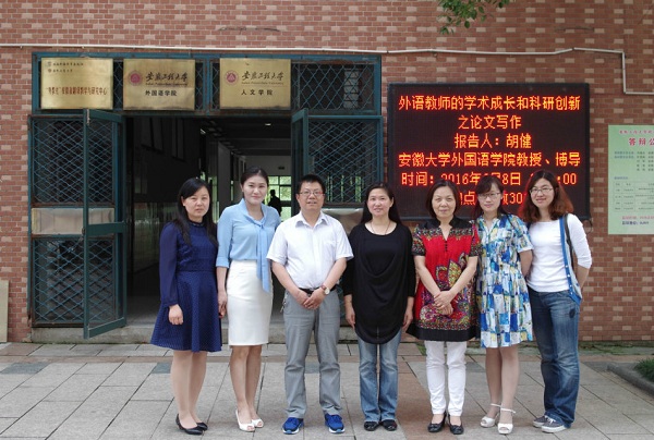 讲座开始前,学院院长刘进教授对胡健来我校讲座表示热烈欢迎,黄焰结介绍了胡健的学术背景。讲座中,胡健首先分析了当前外语教师科研现状和制约外语研究的因素,指出高校外语教师科研与教学并重的必要性。接下来,胡健分别探讨了外语教师“学术成长”和“科研创新”。在“学术成长”部分,她结合自身多年科研经历,细致分析了外语教师在思想和行动上学术成长的具体途径和方法。在“科研创新”讨论中,胡健以三篇核心期刊论文为例,采用个案分析的方式,详细讲解了高质量学术论文的科研选题、研究设计、论证方法和写作技巧等;同时又结合我校外院教师提交的三篇学术论文,就如何选题、撰写内容(题目、摘要、文献综述、内容安排与逻辑等)、参考文献等与在座教师进行了深入的交流。最后,胡健就青年教师如何学术成长和科研创新提出诸多宝贵的建议。本次报告内容丰富,例证翔实,具有很强的针对性和启发性,现场学术氛围浓厚。