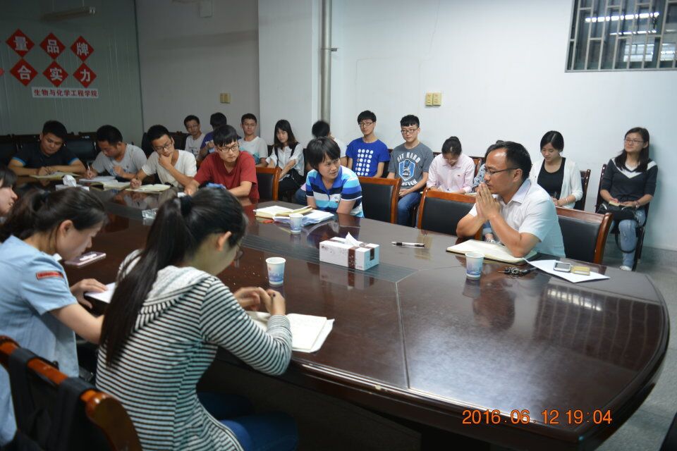 为贯彻落实学校《关于开展创新方式讲党课活动的通知》精神,进一步深化“两学一做”学习教育,推进党支部共建工作取得实效,在机关党委和生化学院党委的领导支持下,6月12日晚,办公室国际处党支部、生化学院高分子专业学生党支部采取“宣讲解读与引导交流结合”的方式,给生化学院高分子专业学生党支部全体党员上了一场精彩的党课。