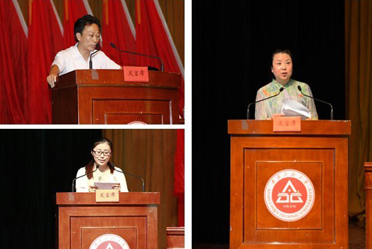 校优秀共产党员获得者、生物与化学工程学院应化133班张佳惠同学,校优秀基层党组织获得者代表、纺织服装学院服装党支部书记邬红芳老师,省属高校优秀共产党员、校第五届师德标兵、马克思主义学院马克思主义理论教研室党支部书记俞卫真老师先后发言,汇报了支部工作情况和个人的思想、学习状况,表达了继续立足岗位、勤奋学习、努力工作、力争再创新佳绩的决心。