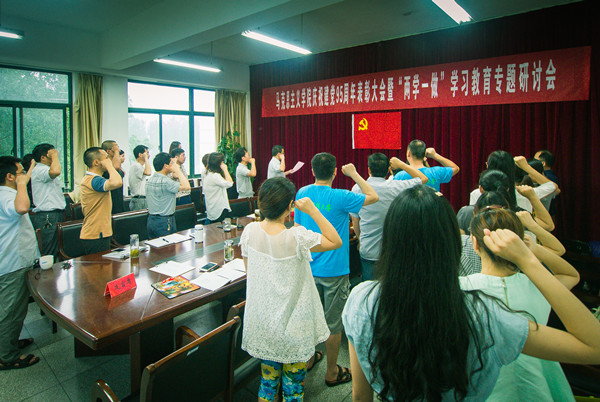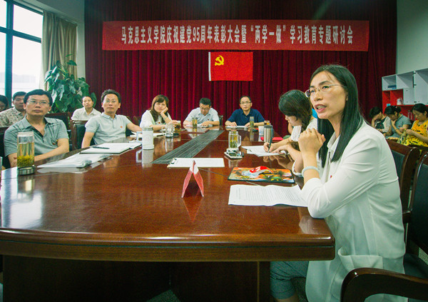 “两学一做”学习教育,基础在学,关键在做。作为思政课教师党员,身处于高校立德树人的主渠道、主阵地,如何践行党的宗旨?如何在自己的本职工作中发挥党员作用?如何紧抓“两学一做”学习教育的契机,使自己成长为优秀的思政课党员教师?7月1日,在马克思主义学院,全体思政课教师党员围绕“坚持党的宗旨、发挥党员作用、争做优秀思政课教师”的主题,以充满学术性、理论性、思辨性的专题研讨向党的生日献上一份特殊的礼物。