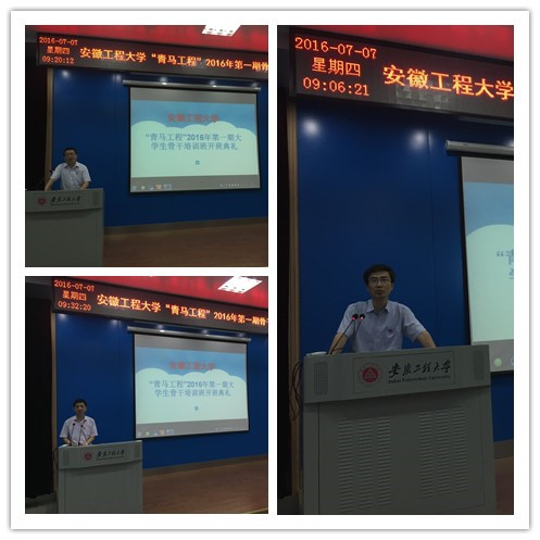 2016年7月7日上午,由校团委、马克思主义学院举办的校“青年马克思主义者培养工程”2016年第一期大学生骨干培训班在5J117开班,校党委学工部部长张开炳、校党委研究生工作部部长刘一、马克思主义学院党总支负责同志王勇智出席开班典礼。开班典礼由校团委副书记冉昆玉主持。