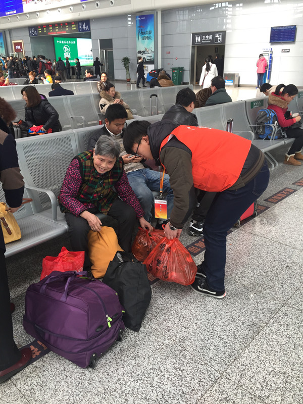 长期以来,每到节假日,人文学院“暖途”志愿者们都坚持在芜湖火车站提供志愿服务,他们依托社会工作的专业背景,将“助人自助”的理念融入到志愿服务活动中。多年来,近千余名志愿者参与其中,直接或间接服务旅客人数达百余万人。2016年2月12日,春节与家人团聚的喜悦还没有退去,“暖途”志愿者们便从四面八方赶回了学校。春运期间,面对巨大的客流量,志愿者们每天早早的赶到车站提供服务,直到暮色退去才离开。工作中,他们认真了解车站的每一个细节,熟悉每一项工作以便带给旅客提供更贴心的服务。