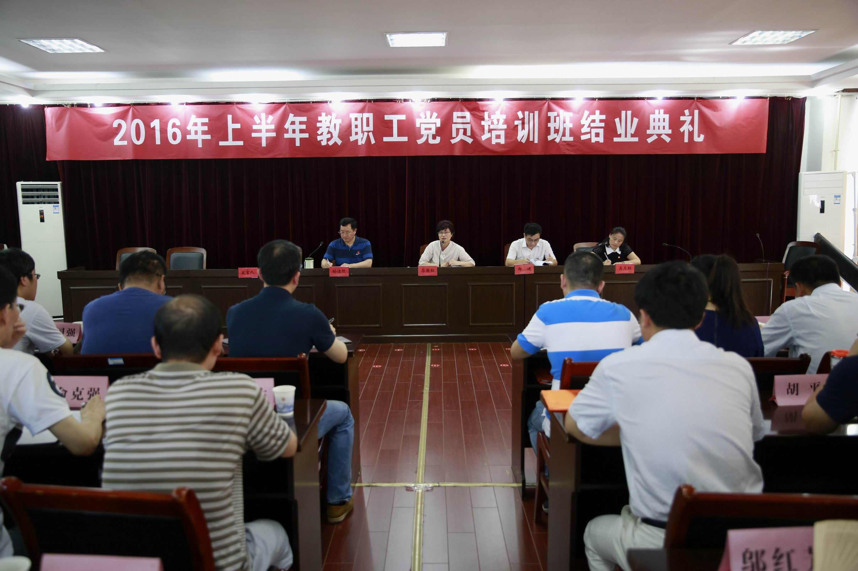 7月8日上午,校党校2016上半年教职工党员培训班结业典礼在行政楼1314会议室举行。校党委副书记、校党校校长苏国红,校党委常委、党委组织部部长郑健,宣传部、校党校负责人及全体培训班学员参加了典礼。典礼由宣传部(统战部)部长、校党校副校长孙浩然主持。