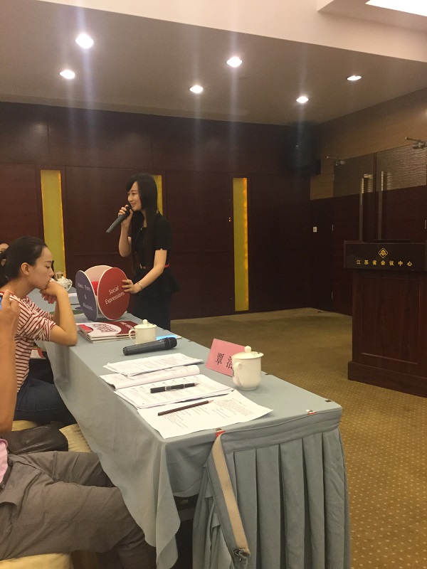 外研社举办的“教学之星”大赛是全国性的外语教学赛事,今年吸引了全国高校的近千名英语教师的热情参与。本次“教学之星”大赛以“技术服务设计,打造智慧课堂”为主题,旨在“让精彩设计在知识与人心之间架起一座桥梁”。在此主题引领下,参赛者的比赛内容包括两个环节,微课在翻转课堂中的应用与现场课堂教学。朱琦主讲的内容是口译中的文化差异,她的微课利用活泼的动画演示了三个案例,总结了其中容易引起不恰当翻译的三种文化类型及应对方法。在翻转课堂中,她进一步以自己的亲身口译经历为实例,深化了所讲知识点。整个教学设计层层深入,环环相扣,配以精美的动画及现场道具演示,征服了在场的专家评委及观摩教师,一举获得全场最高分。