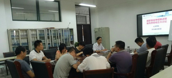 8月3日下午,人文学院2017年度国家基金申报及教育思想观念大讨论推进会在学院会议室举行。学院具有高级职称或博士学位的教师(含在读)等14人参加了推进会。会议由副院长刘军主持。