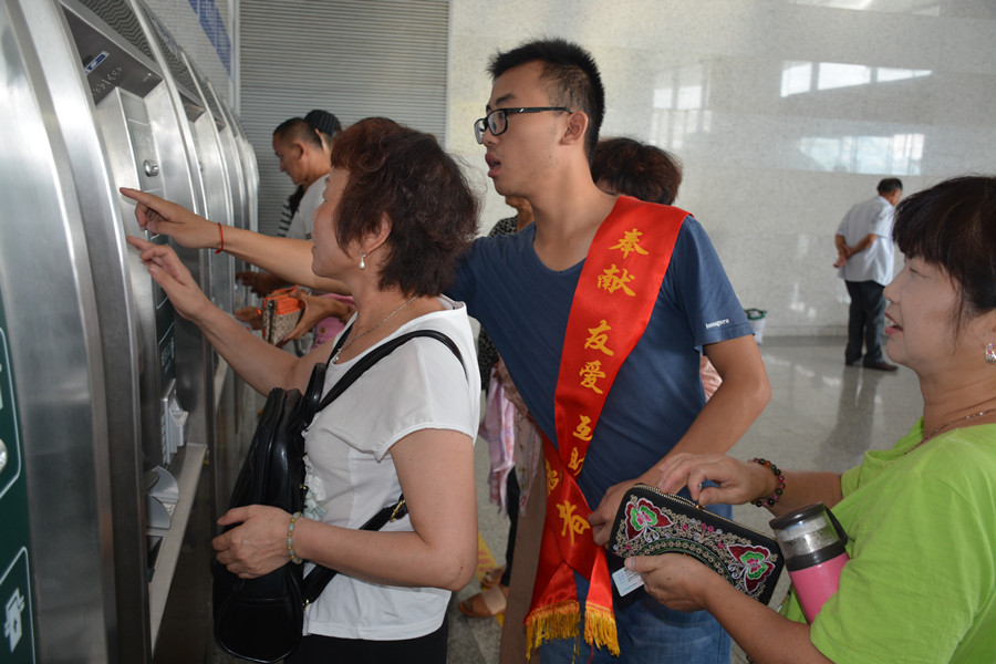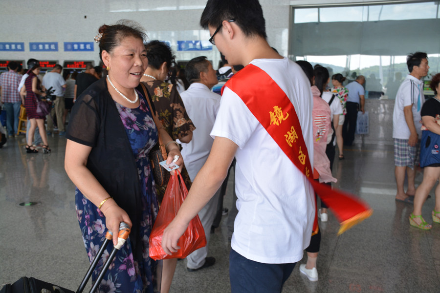 佩戴党员徽章和“奉献友爱互助进步”志愿服务精神字样的绶带开展活动,虽然部分党员同学是第一次参加火车站志愿服务,对一些流程掌握得不够熟悉,但他们仍然很快进入状态,在服务的过程中逐渐熟悉相关服务内容。党员同志们用高昂的热情、友好的态度对待每一个旅客,悉心认真地解决旅客的困难,在服务中践行着志愿服务和“两学一做”的精神。