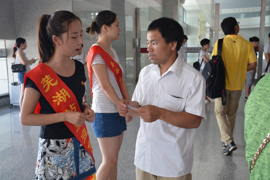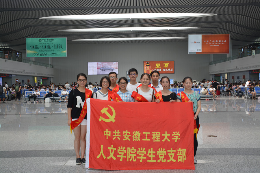 8月10日上午,人文学院社会工作学生党支部暑期留校考研的9名学生党员在支部书记黄江胜的带领下前往芜湖火车站开展志愿服务活动。本次活动是社工学生党支部暑期“两学一做”的重要组成部分,用实际行动践行“两学一做”精神。