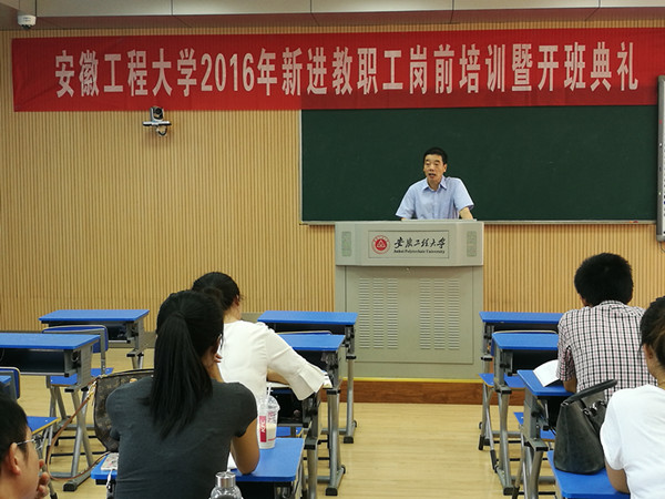 8月11日上午,学校2016年新进教职工岗前培训开班典礼在五教115教室举行。校长刘宁出席开班典礼并讲话。37名新进教职工参加培训,开班典礼由人事处副处长周晓宏主持。