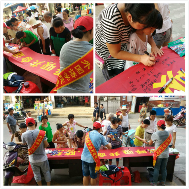 志愿者们踩着朝阳在集市中摆好宣传用品。他们在向当地居民发放宣传资料的同时,不停地向居民们宣传什么是结核病以及如何预防结核病等知识。同时,他们还邀请居民们在“同呼吸共命运,防结核齐行动”的横幅上签下姓名。在场的居民们有的牵着孩子,手把手地在横幅上签名;有的鼓励刚学会写字的孩子,自己签下自己的名字;还有鬓发全白的爷爷奶奶在横幅上一笔一划地签名。居民们朴实且简单的性格为活动更添一笔温暖。