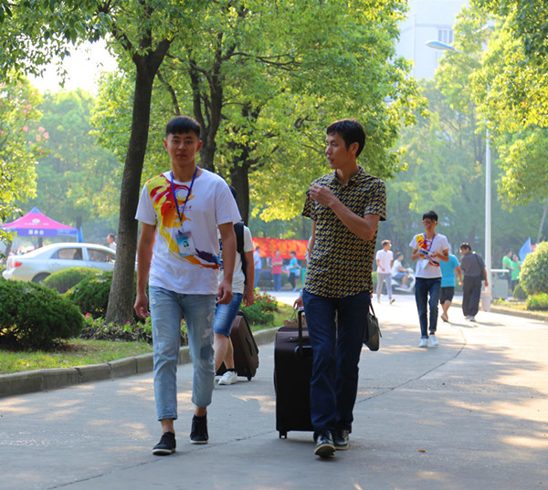 在迎新现场,各部门人员各司其职,来自院学生会各个部门的志愿者分布在不同的工作岗位,学校大门口、校车点、宿舍……学院的每一个角落都能看到志愿者们忙碌的身影。烈日炎炎,然而志愿者的热情依旧不减,他们按照报到流程有条不紊地工作着,努力为新生和家长们提供热情、周到、优质的服务。一辆辆校车驶入校园,等候已久的志愿者们高举着院系指示牌,帮助新生找到学院迎新点,接待处的志愿者们热情地引领新生进行信息登记,随后带领着新生找到各自寝室,并一路与新生及家长进行交谈,为新生和家长讲解安徽工程大学的学校概况和新生入学注意事项,消除他们路途的疲惫感与初来大学的陌生感。
