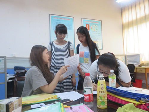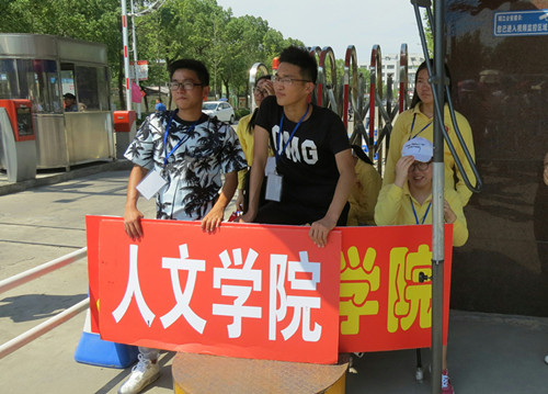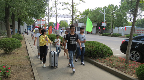伴着一声鸣笛,校车驶进校园,举着系旗和引导牌的志愿者们早已在等候。他们帮助新生们办好登记手续,完成注册,以及入住宿舍等工作。他们不厌其烦地向新生们介绍学校的楼层分布和生活注意点,以满腔热情使新生尽快的熟悉新的环境,更快的融入学校的生活。志愿者频繁穿梭于报到现场和学生公寓之间。他们一次次地往返,次数多达一天20趟。因为走路多了,不少志愿者脚上都磨出了泡。他们热心和关怀给新生们传递了不一样的温暖。校园内人头攒动,但是秩序井然。
