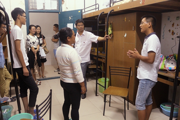 9月1日晚,数理学院党委副书记水心宝,团委书记郭亚勤(学工秘书),新生辅导员李悦以及8名学长导员深入学生宿舍看望2016级新生。