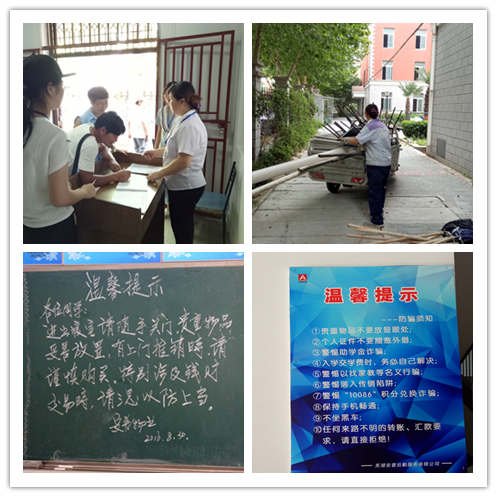 新生报到前日,按教务处要求布置好各新生报到点。报到当日,为各迎新点送去饮用水,为防止新生及家长集中涌入宿舍楼,造成混乱,给楼内其他同学带来不便,我们在宿舍楼安排了双岗,引导疏散来往人员,做好新生报到和外来人员登记工作。巡楼员们也在各个宿舍间来回穿梭,与宿管会的志愿者们一起细心地解答每一位新生的疑惑,提醒新生入住宿舍时的注意事项。每当遇到新生和家长发现寝室有不如意的地方,只要接到报告,安普物业的维修工们就会及时带着工具前去维修,保洁阿姨随时跟进。家长们说:看到这里干净的过道,整洁的水房,无异味的厕所,感受到礼貌周到的服务,知道自家孩子在这里生活,可以放心了。