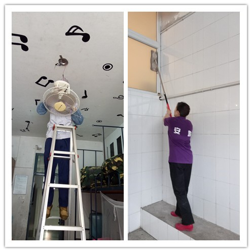为了给新生营造一个温馨、整洁的住宿环境,安普物业所有员工早在暑假期间就已经做了大量的迎新准备工作:宿舍楼里新生房间打扫卫生,检查家具、空调,更换擦洗纱窗、电扇,楼道出新后垃圾清理,核对新生信息,协助配送新生用品,更换浴室更衣柜,维护保养锅炉,配合安装女生防攀爬系统,淋浴房、洗衣房改造,楼顶防水工程的施工等等,安普物业的员工不畏酷暑,克服困难,尽心尽力地完成着每一项工作。