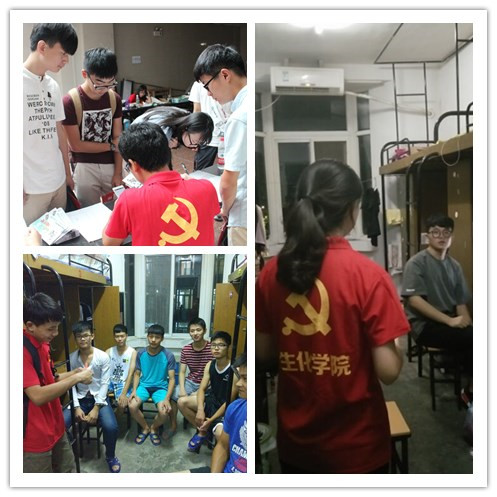 报到当天学院101位学生党员也积极活动在迎新的一线,有的担任助理辅导员,从暑假开始在QQ上和新生互动,解答新生关于校园生活的一切疑惑;开学负责新生报到,耐心地向每一位新生解释校园卡、银行卡的使用以及寝室生活等相关事项。还有的在宿舍党员服务站工作,接待家长和新生。1日晚上,所有负责对接新生的党员也来到了新生宿舍,和大一新生们沟通交流。未来一年间,对接党员会定期来到宿舍,在新生大学适应期起到积极的帮扶和引导作用。