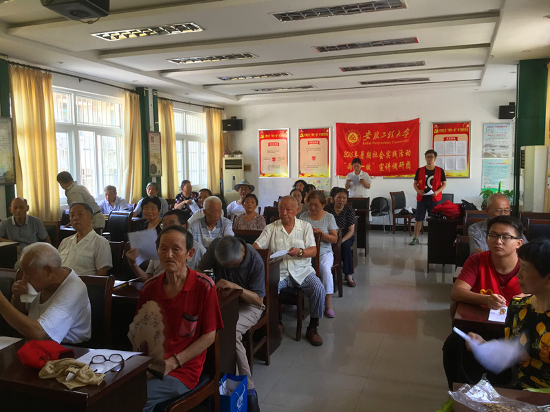 在社会实践中开展“两学一做”学习教育宣讲,既要注重区分宣讲对象,多讲老百姓喜欢听、听得懂、听得进的话,又要注意把握好政策导向,拉近与基层群众的感情距离。对于农村百姓,宣讲调研团队深入农村,走访入户,通过知识讲解与问卷调查进行普及;对于社区居民,宣讲调研团队走进社区,通过现场演示和报告宣讲进行引导。机械与汽车工程学院“两学一做”宣讲调研团队走进社区,学院党委主要负责人和学生党员结合自身理解和体会,围绕“四讲四有”,以“加强党性修养,增强政治自觉,做合格党员”为主题联袂为社区党员讲党课。纺织服装学院“两学一做”宣讲调研团队在“九一八”事变85周年之际,深入社区以“回顾九一八历史,勿忘国耻,做合格党员,振兴中华”为主题,向社区居民介绍“九一八”事变历史背景,宣讲“两学一做”相关知识。生物与化学工程学院 “两学一做”宣讲调研团队深入社区开展“新老党员面对面”、“党章党规趣图解”、“指尖上的‘两学一做’”等内容丰富的宣讲调研活动。计算机与信息学院“两学一做”宣传调研团队深入社区以轻松、朴实的方式与基层党员交流“两学一做”学习心得,激发基层党员学习“两学一做”兴趣。数理学院“两学一做”宣讲调研团队走进红色革命教育基地泾县,通过图片展示和知识宣讲,直观形象地向参观旅游者宣传“两学一做”学习教育内容。外国语学院“两学一做”宣讲调研团队以发放问卷调查的形式,宣讲党章党规和习近平总书记系列重要讲话精神,并对基层群众了解“四进四信”和“三严三实”情况进行调研,共征集到包括“重视基层,关心基层,强基固本,激发党组织力量”等19条与党员作风有关的意见建议。建筑工程学院“两学一做”宣讲调研团队结合今年芜湖抗洪抢险涌现的众多不顾个人安危、站在抢险第一线的人民子弟兵、武警战士、广大志愿者的感人事迹,诠释党员在危难时刻要冲锋在第一线,要发挥好先锋模范作用,践行党员入党时的庄严承诺。据统计,学校组建的11支“两学一做”宣讲调研团累计完成了1000余份问卷调查,发放了1500余份宣传资料。