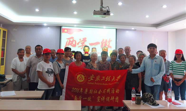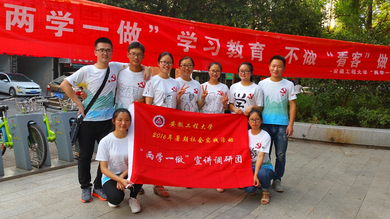 学好学活“两学一做”,要坚持学做结合,知行合一。各学院围绕社会实践主题,结合自身专业特色优势,依托社会实践基地,组织青年学生投身社会实践,着力打造社会实践创新点。人文学院“两学一做”宣讲调研团队依托社工专业优势和“和谐花”志愿服务基地,来到芜湖火车站,配合车站维持秩序,开展志愿服务行动,为G20峰会的举办贡献力量。艺术学院“两学一做”宣讲调研团队赴芜湖市清凉渡村开展墙体彩绘社会实践活动,团队成员结合专业特色和美丽乡村建设需求,发挥艺术学生所长,通过墙绘的形式向基层群众宣讲“两学一做”和“社会主义核心价值观”,以实际行动参与到美丽乡村建设中来。电气工程学院“两学一做”宣讲调研团队前往宿州市埇桥区鸭湖村,开展家电维修和科普宣讲社会实践活动,将利用专业优势服务基层群众与“两学一做”宣讲结合起来,进一步增强了宣讲的实效性,团队成员李帅在日记中这样写道:虽然好几天都是酷热难耐,汗流浃背,但我们团队每一个人都乐在其中,看着故障电器在经过维修后重新开始工作后村民的点头称赞,作为一名党员的使命感和光荣感从心底油然而生。