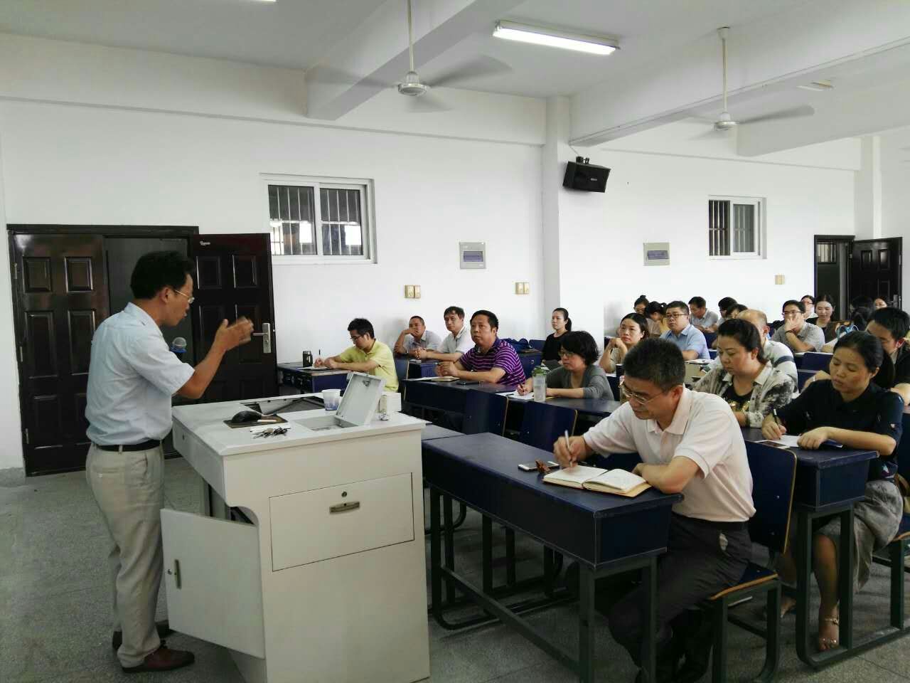 俞卫真先分别从“习近平治国理政思想的历史维度”、“习近平治国理政思想的现实意义”及“习近平治国理政思想的逻辑体系”三个方面对习近平治国理政思想进行了详细的阐述和深刻的解读。通过俞卫真风趣幽默、深入浅出的讲解,让大家认识到习近平治国理政思想是对马克思主义中国化理论成果的创新与发展,它是思想逻辑和历史逻辑的辩证统一,是科学社会主义历史规律思想起点依据学说、思想形式内容学说在中国共产党理论创新中的具体体现,是对马克思主义哲学根本方法和马克思主义执政党建设规律的深刻诠释。最后,俞卫真通过“学而知”、“学而信”、“学而用”三个方面的实践要求告诉大家如何学习贯彻习近平治国理政思想和践行“两学一做”。