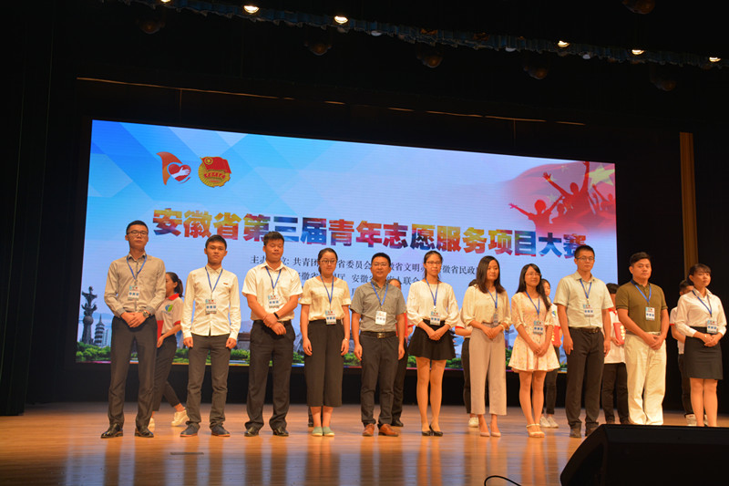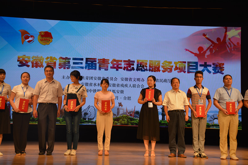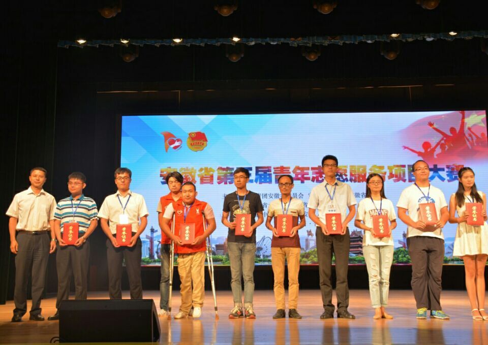 9月5日至6日,由团省委、省文明办、省民政厅、省水利厅、省残联共同主办的安徽省第三届青年志愿服务项目大赛决赛在中铁四局举行,此次大赛以“青春志愿行 共筑中国梦”为主题。团中央志工部副部长王明学,中铁四局党委副书记、纪委书记袁敏,团省委副书记李国阳出席颁奖仪式并讲话。我校共有四个项目成功晋级决赛,经过激烈的角逐,来自电气学院的《家电义务维修便民服务项目》和人文学院的《听花开的声音——盲校志愿行项目》荣获一等奖,并代表安徽参加由团中央、中央文明办、民政部、水利部、中国残联、中国志愿服务联合会共同主办的第三届中国青年志愿服务项目大赛,纺服学院的《“常青藤”传递幸福——爱心摄影活动》和体育学院《“满天星”关爱自闭症儿童康复训练志愿服务项目》获得二等奖。
