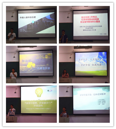 会上,各团队通过PPT展示的形式分别从实践活动的前期准备、开展情况、影响效果等方面进行了分享。汇报过程中,各团队主题明确,逻辑清晰,暑期实践活动浓缩成了一张张图片、一个个数据……通过团队代表的汇报让大家感受到了收获、成长和改变。