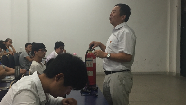 邬海量通过近年来在校内外发生的真实案件案例,对防火、防溺水、防交通事故、防盗、防诈骗、防传销、女生的自防自卫等方面做出系统讲解,让同学们意识到保障人身安全、财产安全等的重要性。他还现场演示了灭火器和消防栓的使用方法,让同学们对如何应急处理火灾有了直观了解。最后,他还介绍了学院党组织的设置和任务,希望同学们在大学期间积极向党组织靠拢,把自己的发展规划和中华民族的伟大复兴结合起来,更好地实现人生价值。