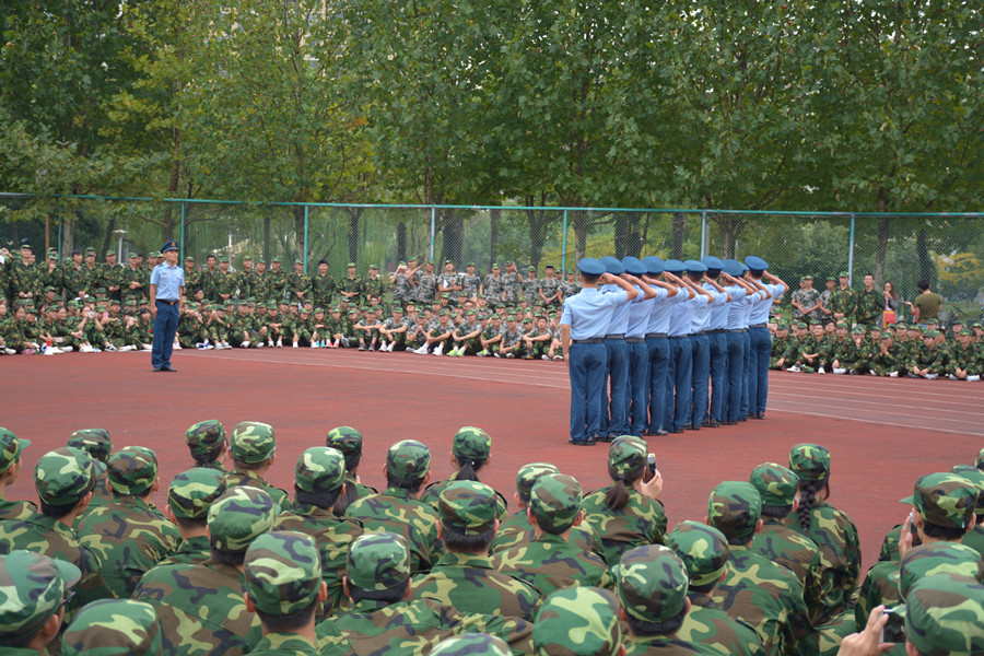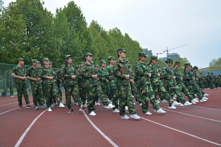 在军训场上,新生们个个身着整洁的迷彩、整齐划一的步伐、统一规范的动作,成为校园里一道靓丽的风景线。“团结一心,自强不息”,嘹亮的口号响彻整个校园,“稍息,立正,向右看,敬礼,礼毕……”洪亮的声音回荡在军训场上。