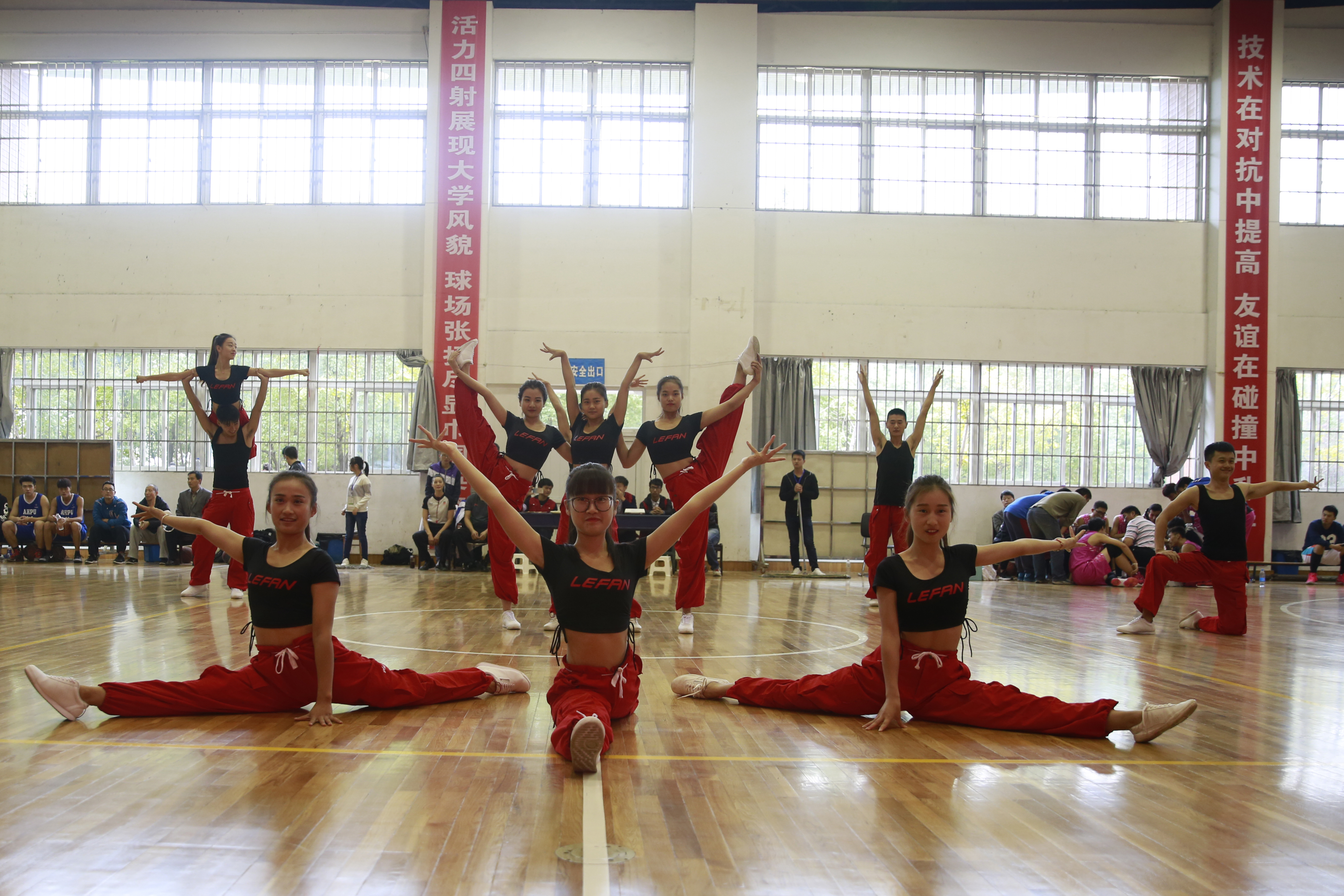 本次比赛分为小组循环赛和交叉淘汰赛。在小组循环赛中我校男篮先后大比分取胜黄山学院、皖南医学院、安徽大学,取得了男甲C组第一名的优异成绩。在交叉淘汰赛中,我校男篮先后战胜了安徽农业大学和安徽医科大学,于10月17日上午与安徽建筑大学在冠亚军争夺赛中对决。决赛阶段,我校男篮充分展现了不服输,勇往直前的优秀精神品质。在开局不利的情况下,我校男篮临危不惧、克服困难、团结作战。最终以89:67的大比分赢取了比赛的胜利,荣获2016年安徽省大学生篮球比赛甲组冠军,这是我校男篮首次斩获该赛事的冠军。女篮虽然在小组循环赛中憾败,但她们敢于拼搏、勇往直前的精神感染着到场的每一位观众。