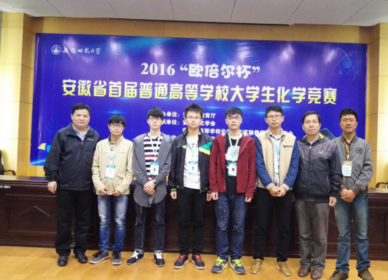 10月14日至16日,2016年“欧倍尔”杯安徽省首届普通高校大学生化学竞赛决赛在安徽师范大学举行。本次赛事分为初赛和决赛两个阶段,共有来自中国科学技术大学等省内高校九千余名学生参加初赛,遴选出31支代表队入围决赛。经过激烈角逐,我校学子共取得一等奖4项、二等奖1项、三等奖59项的优异成绩。
