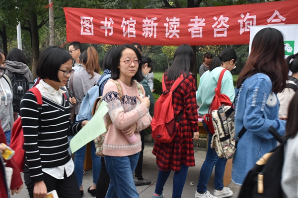 为主动了解和适应网络信息时代读者不断变化的需求,更有效地服务于新读者,使他们尽快地了解和学会使用图书馆各种资源,特别是数字文献资源,10月24日下午,图书馆在西馆门前举办了新生读者咨询会。本次咨询会是第十一届“读者服务宣传月”系列活动之一。图书馆党支部组织信息技术服务部、采编部和流通部的党员业务骨干现场向读者推介各类数字资源并答疑解惑。