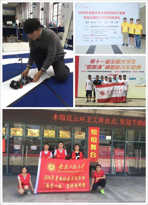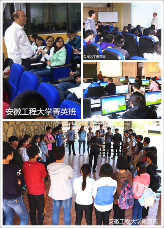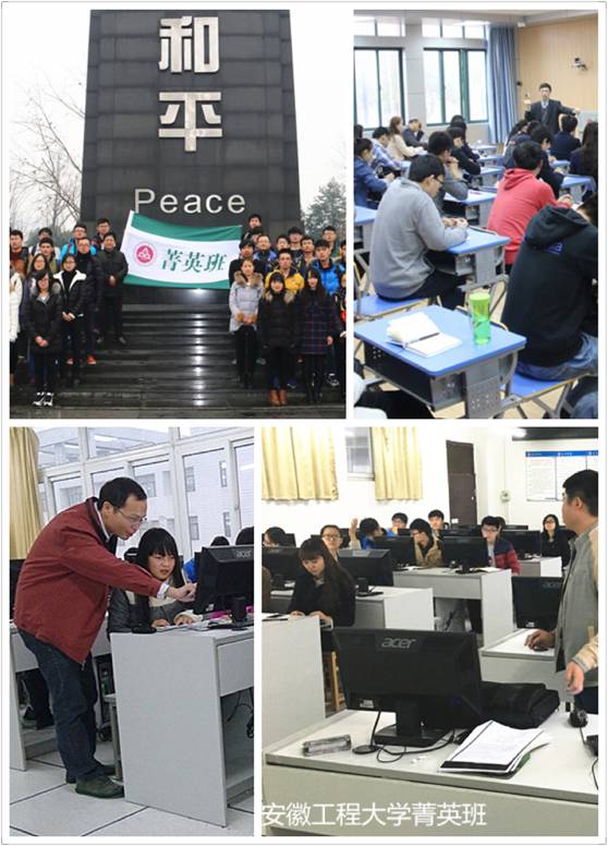除了抓学习,菁英班学员在学科竞赛、创新创业、社会实践等方面成绩亦优异。他们勇于接受挑战,努力寻求突破。班集体先后参加了五一数学建模联赛、“电工杯”数学建模竞赛,“认证杯”数学建模网络挑战赛,共获得一等奖3个,二等奖6个,三等奖17个。除集体参加数学建模比赛外,还有个人独自参加的竞赛,如张国义同学获安徽省第九届大学生智能车竞赛一等奖,安徽省单片机与嵌入式系统应用技能竞赛一等奖;林远同学在首届安徽省大学生化学竞赛获一等奖;朱得元同学在安徽省高校物联网应用创新大赛中获全国二等奖。熊小燕、江筠潇、黄艳丽三名同学通过校内选拔,成功参加暑期赴美夏令营,拓展了学习视野,提升了学习动力。此外,菁英班学员在十佳歌手,体育竞赛,志愿服务,社会实践等活动中也取得不俗佳绩。
