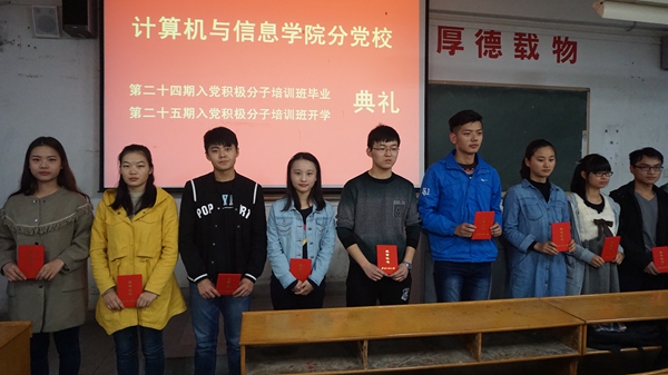 10月26日下午,计算机与信息学院分党校在4教212教室举行第24期入党积极分子培训班结业暨第25期入党积极分子培训班开班典礼。第24期入党积极分子培训班班主任周磊与两期培训班全体学员参加了本次典礼。
