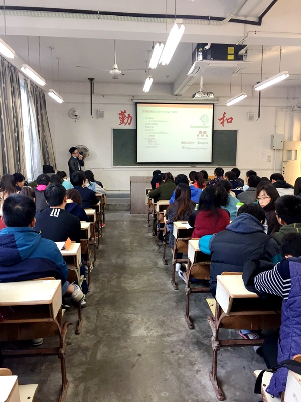 11月2日下午,图书馆邀请爱思唯尔(Elsevier)公司培训师王庆伟在二教203教室作了题为“ScienceDirect数据库使用以及Elsevier期刊投稿”的讲座。来自各个院系的师生将近150余人聆听了讲座。
