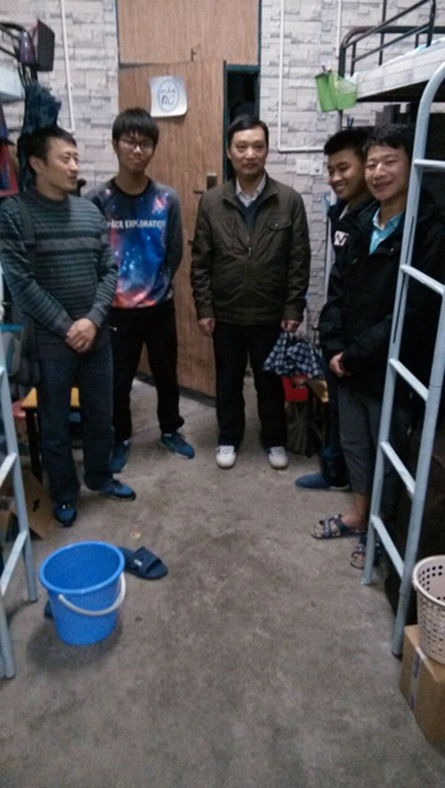 为加强对学生人文关怀,推进领导进教室、进宿舍工作,11月7日下午,人文学院党委书记邓英扣、团委书记黄江胜,院党委副书记金艾裙、辅导员梅琼分成两组分别走访了男生、女生宿舍。