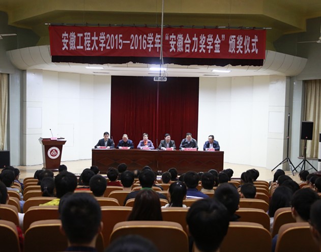 近日,学校2015-2016学年“安徽合力奖学金”颁奖仪式在学术报告厅隆重举行。安徽叉车集团有限责任公司党委委员、安徽合力股份有限公司总工程师马庆丰,安徽合力股份有限公司人力资源部部长李洪俊,校党委副书记苏国红出席颁奖仪式,并在主席台就坐。仪式由校办公室主任王弘主持。